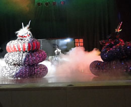 Haruo Shimada's "Dragon Illusion" is the epitome of modern-day Wazuma that uses traditional Japanese legends as its motif, which is a spectacular show of giant dragons upon the stage.